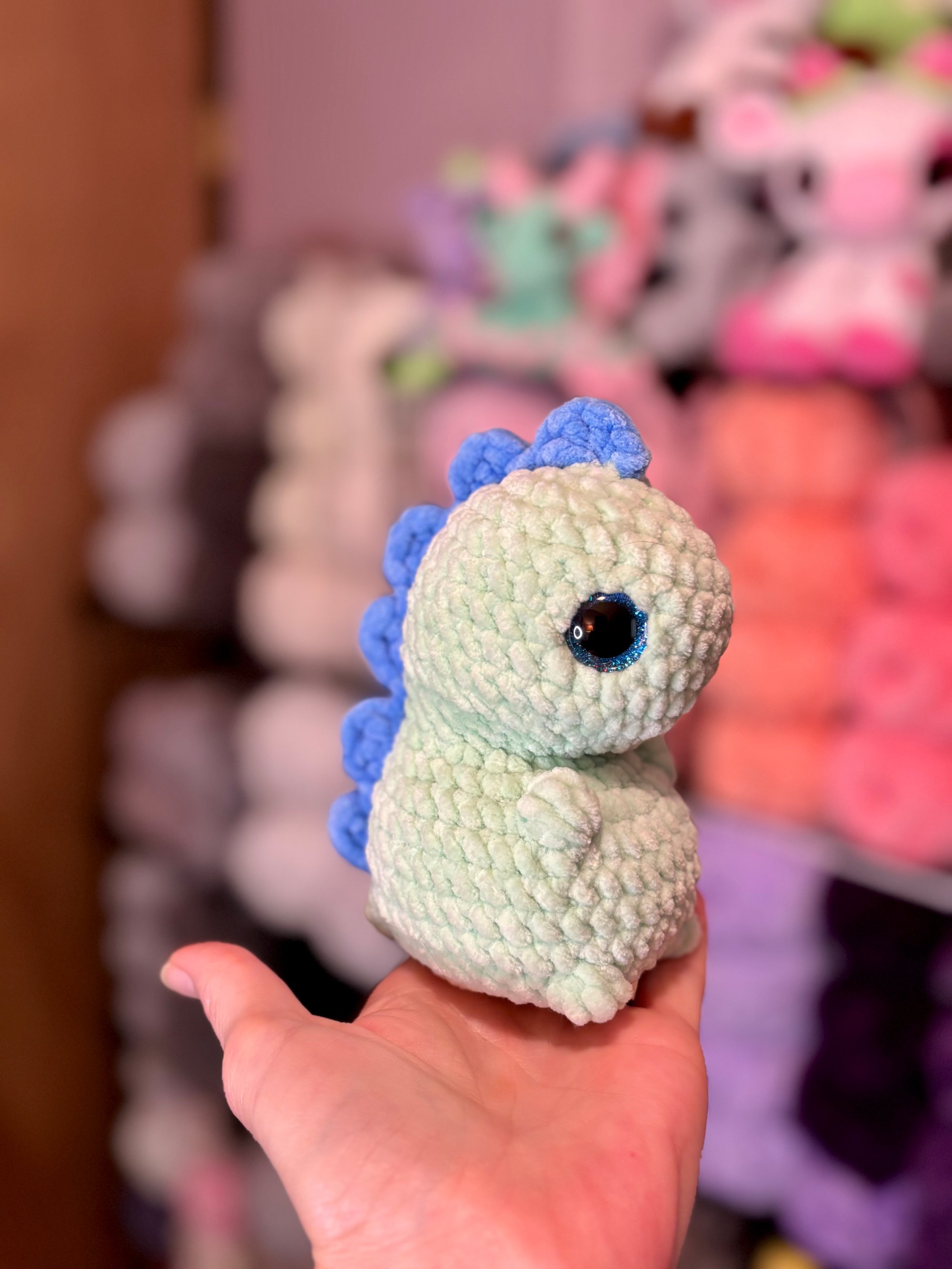 This adorable hand-crocheted T-Rex is small but mighty, featuring tiny arms and lots of prehistoric charm. Soft, cuddly, and full of personality, this little dino makes the perfect gift for dinosaur lovers of all ages or a fun addition to any collection.