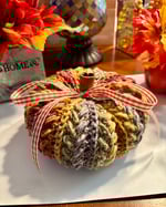 Bring the warmth of fall into your home with this handmade crocheted pumpkin! Crafted with a textured wheat stitch in soft Cobblestone Ivy yarn, it captures all the cozy shades of the season in one piece. A real cinnamon stick serves as the stem, adding a natural rustic charm (and a hint of spice), while a fall-themed bow completes the festive look. Perfect for decorating mantels, tiered trays, or as a centerpiece, this pumpkin is a timeless addition to your seasonal décor.
